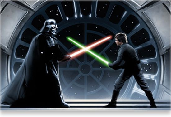 He kills the Emperor by throwing his former master down the Death Star’s reactor shaft. In the process, however, he is mortally wounded by the Emperor’s lightning. With his dying breath, he tells his son that there was good left in him after all.